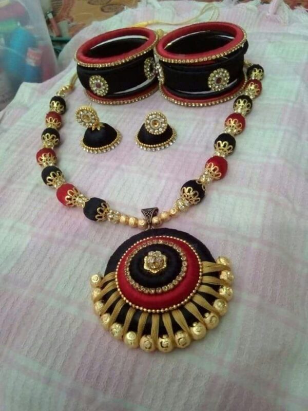Black and Red Silk Thread Jewelry Set: The Artistry of Contrasting Elegance