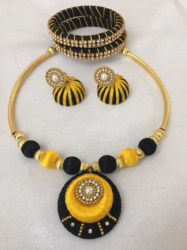 Black and Yellow Silk Thread Necklace Set: A Fusion of Vibrance and Elegance