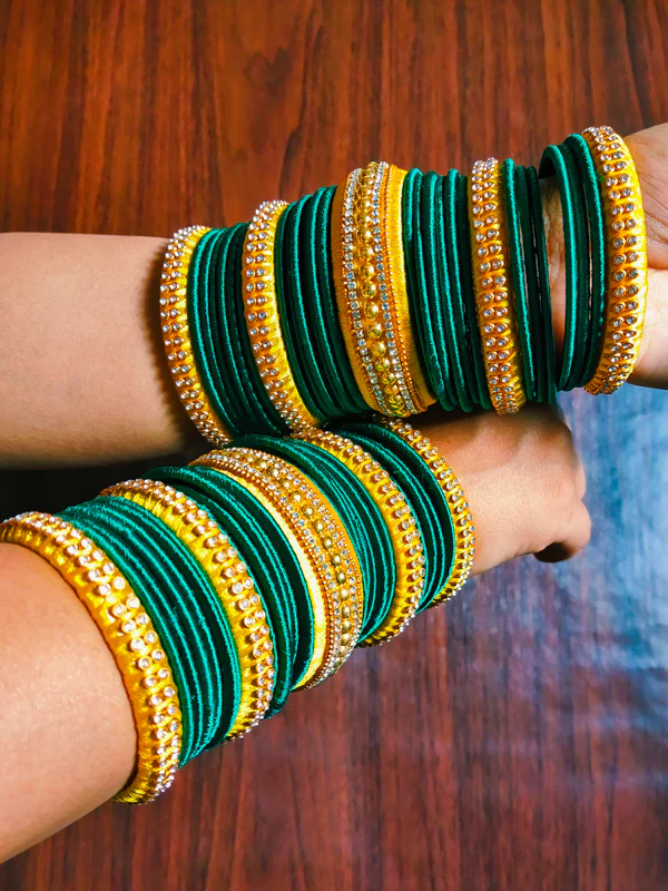 Green and Yellow Silk Thread Bangle Chuda: Where Tradition Meets Vibrancy