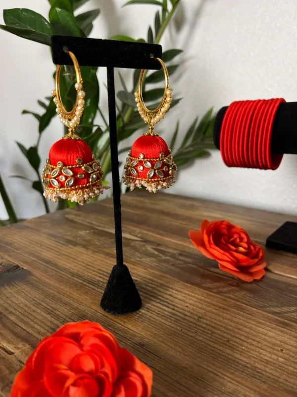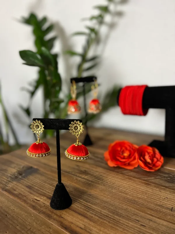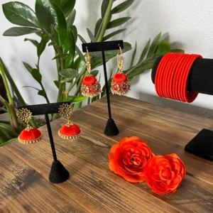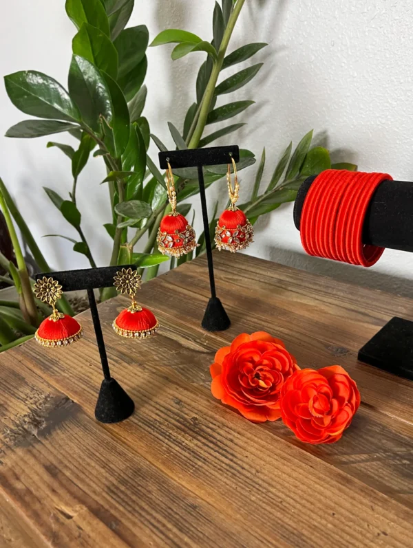 Pair the Grand Jhumka Earrings with a heavy lehenga set, or your favorite denim + tee look for an indowestern vibe. The Petite Jhumka Earrings will bring a little chic, unique, fun to any ensemble, and we know that bangles are an effortless way to add a pop of color and polish. Whether you are looking for contrast in color, or a match, our silk thread jewelry sets are a great way to enhance your color palate. A wonderful option for bridal party jewelry or gifts.