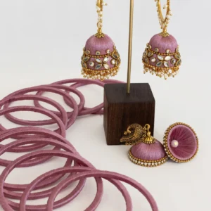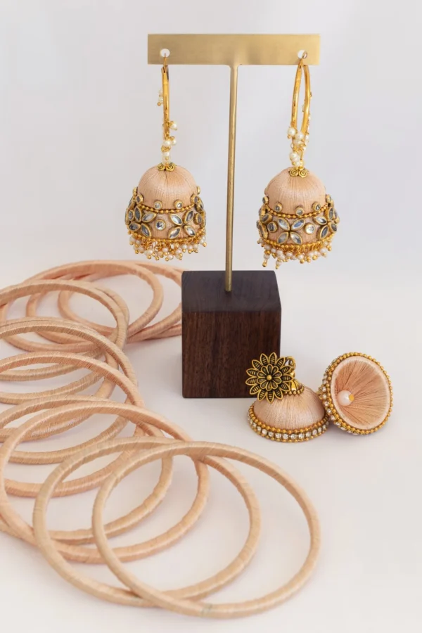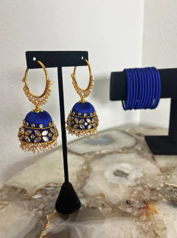 Pair the Grand Jhumka Earrings with a heavy lehenga set, or your favorite denim + tee look for an indowestern vibe. The Petite Jhumka Earrings will bring a little chic, unique, fun to any ensemble, and we know that bangles are an effortless way to add a pop of color and polish. Whether you are looking for contrast in color, or a match, our silk thread jewelry sets are a great way to enhance your color palate. A wonderful option for bridal party jewelry or gifts.