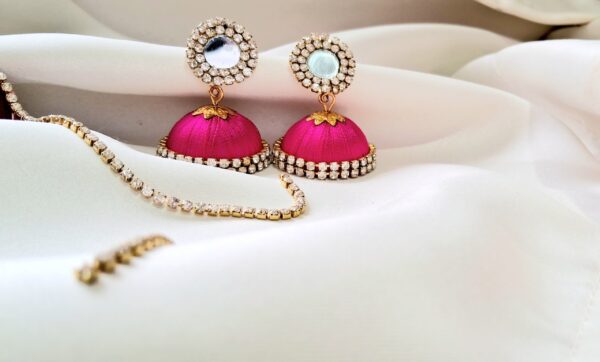 These Silk Thread Jhumka are Purely Handmade with Love and decorated with stones, beads and Loreals to make it Gorgeous. We use best quality Threads, Stone chain, Ball chain, Pearl Loreals and Jhumki base.