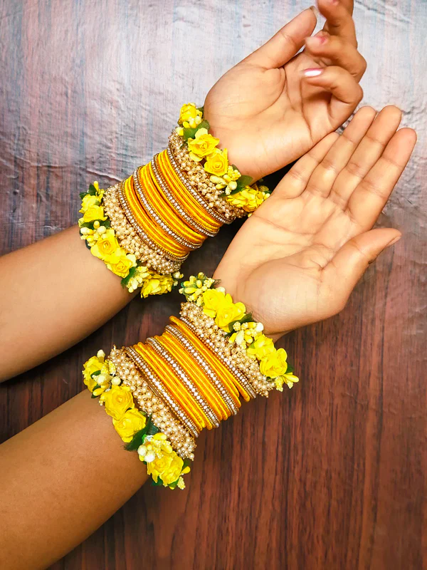 Yellow Silk Thread Flower Bangle Set with L’Oréal Bangles: A Fusion of Beauty and Glamour
